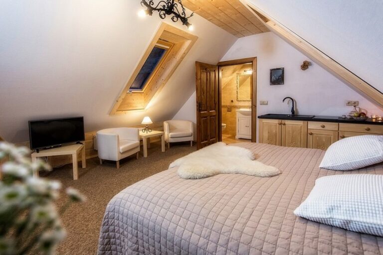 W apartamencie znajdują się 2 łóżka pojedyncze oraz rozkładana sofa. Apartament dysponuje aneksem kuchennym (lodówka, zlew, płyta grzewcza, czajnik elektryczny, zastawa kuchenna i sztućce), drewnianymi meblami, telewizorem z płaskim ekranem, balkonem oraz częścią wypoczynkową. W apartamencie znajduje się również łazienka z prysznicem i ręcznikami, jest dostęp do Internetu oraz widok na góry.