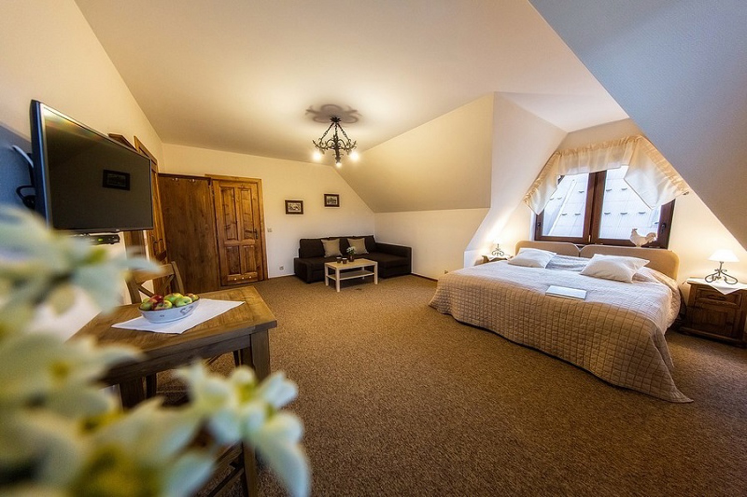 W pokoju znajdują się 3 łóżka pojedyncze oraz rozkładana sofa 2-osobowa. Pokoje dysponują drewnianymi meblami, telewizorem z płaskim ekranem, balkonem oraz częścią wypoczynkową. W pokojach znajduje się również łazienka z prysznicem i ręcznikami oraz jest dostęp do Internetu.